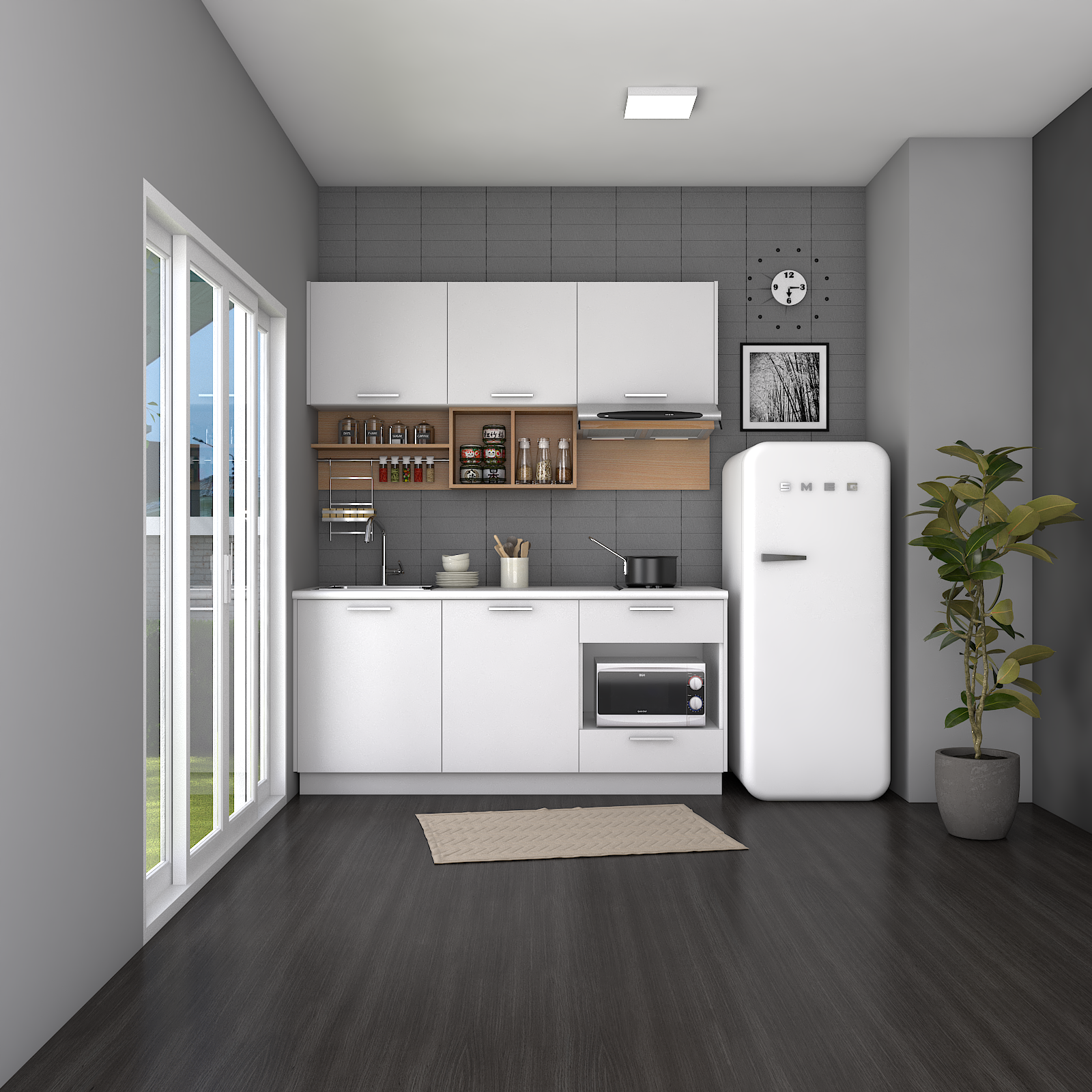 ครัวสำเร็จรูปขนาดกะทัดรัด เหมาะสำหรับคอนโดหรือบ้านพื้นที่จำกัด